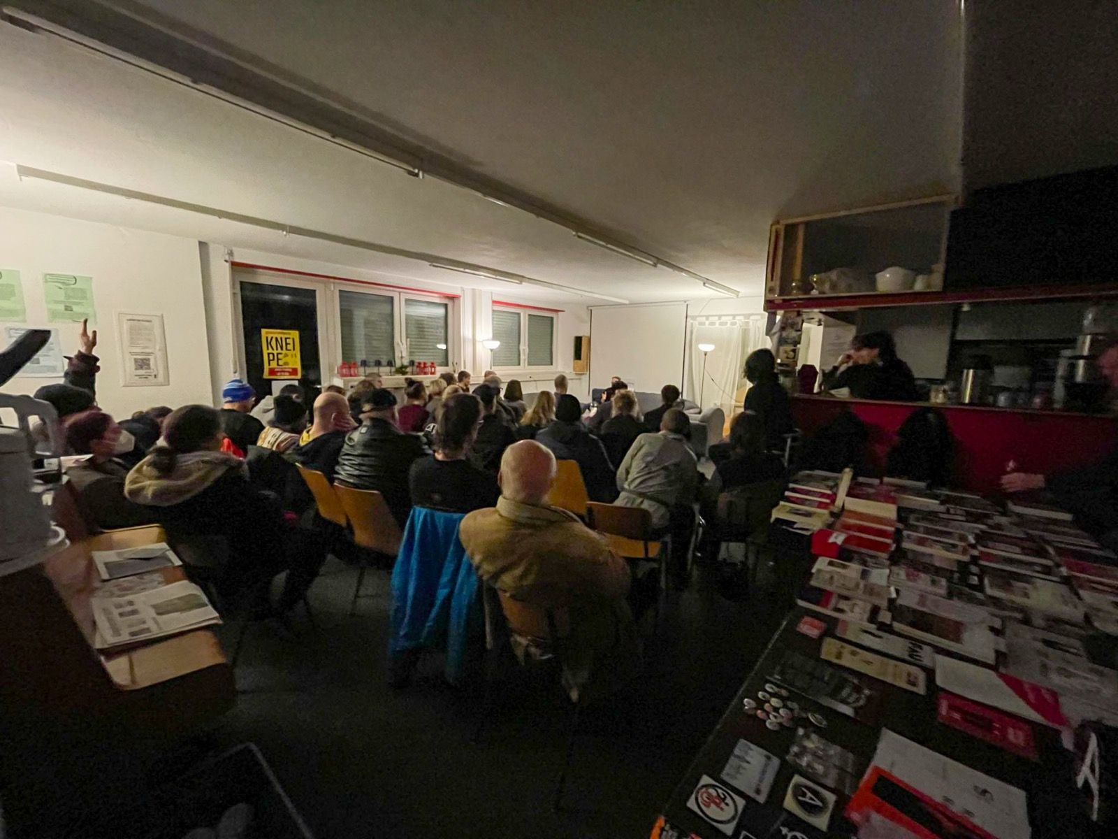 Am 24. Januar kamen rund 40 Leute ins Stadteilzentrum Gasparitsch, um Martin Veith zu hören – von 17 bis 70 war alles dabei. Veith war selbst bei der Anarcho-Syndikalistischen Jugend (ASJ) aktiv und hat mit „Eine Revolution für die Anarchie“ ein Buch über die Geschichte der Gruppe geschrieben.