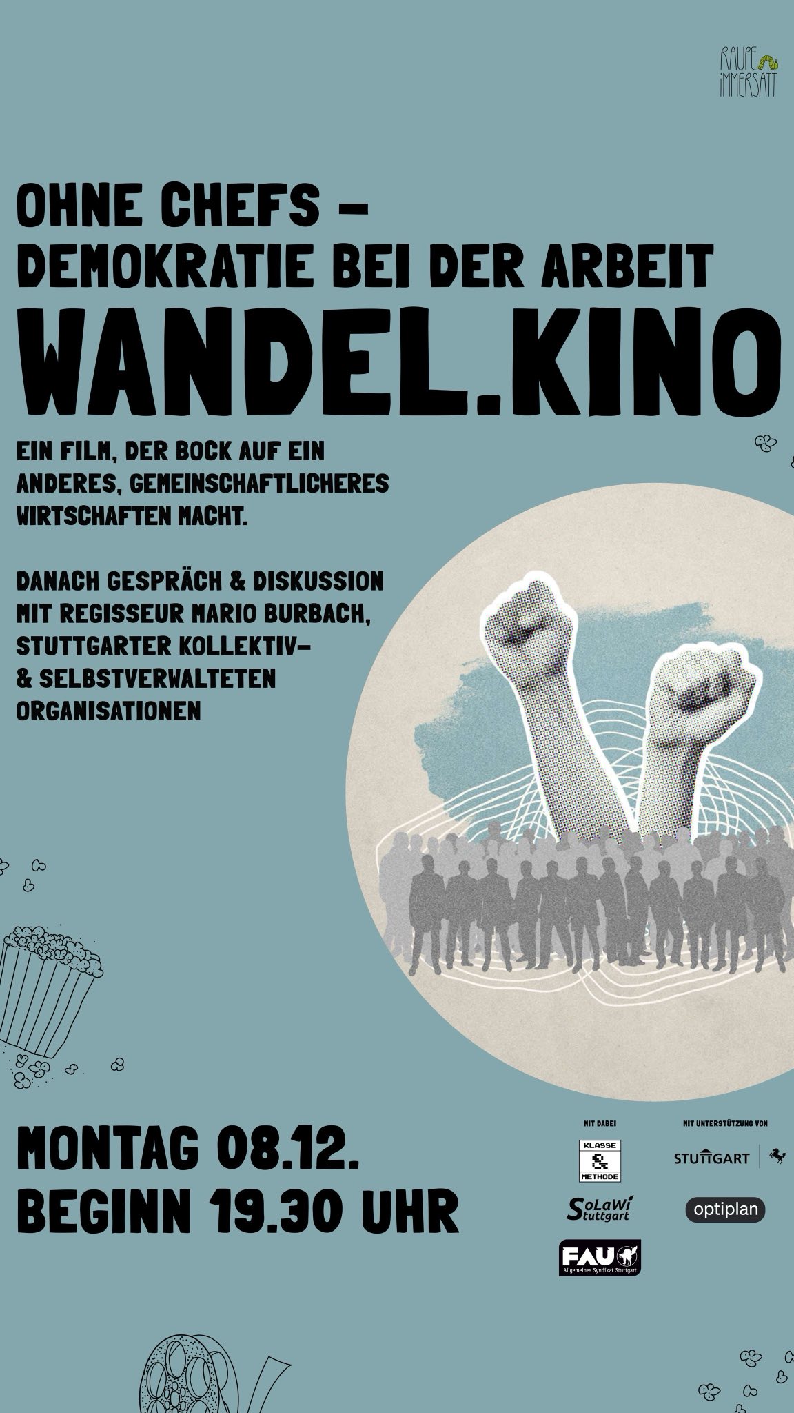 Besonders freut uns, dass Regisseur Mario Burbach bei der Veranstaltung mit dabei ist und eure Fragen zum Film beantwortet. Als weitere Gäste begrüßen wir Mitglieder aus Stuttgarter kollektiv- und selbstverwalteten Organisationen, die euch live aus der Praxis berichten. Perspektiven entdecken, Hintergründe erfahren, Erfahrunge austauschen – seid gespannt!